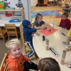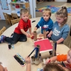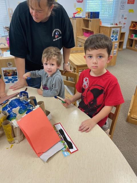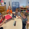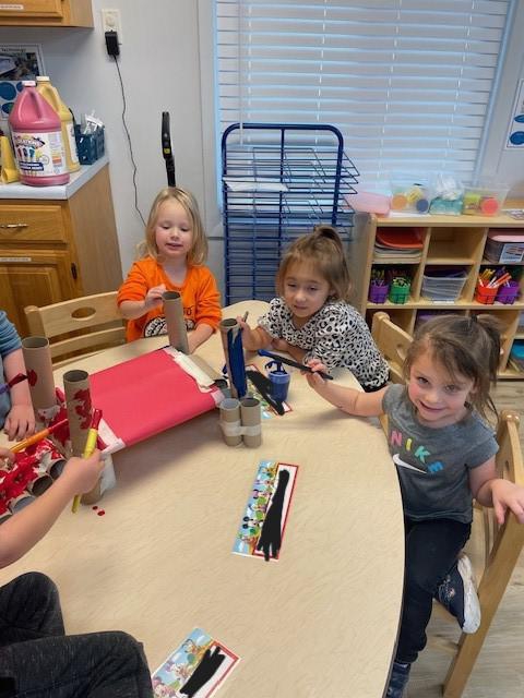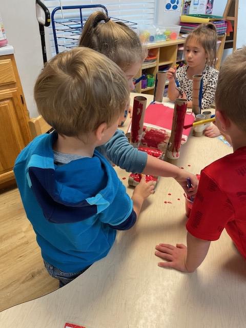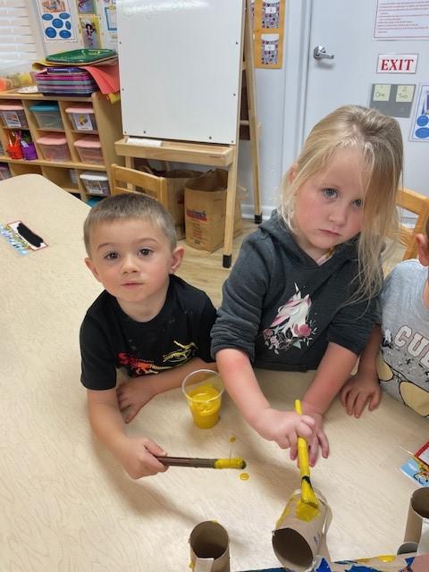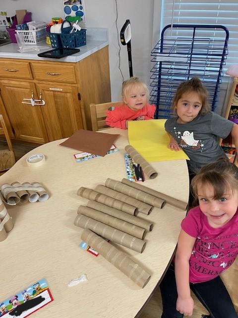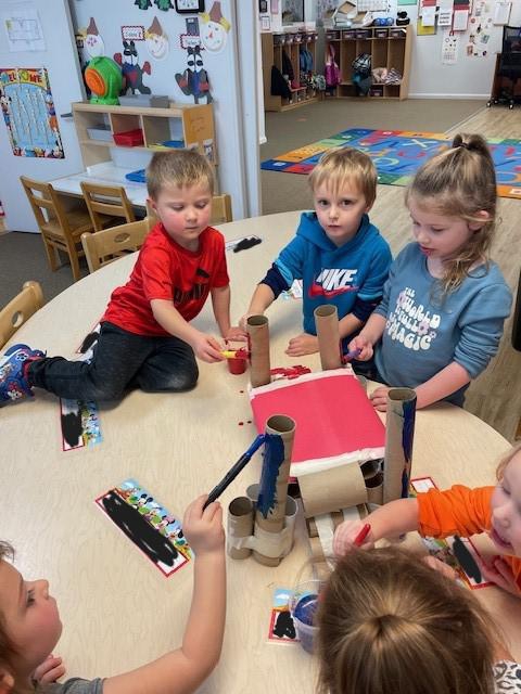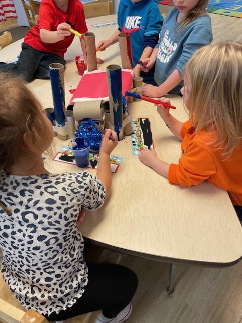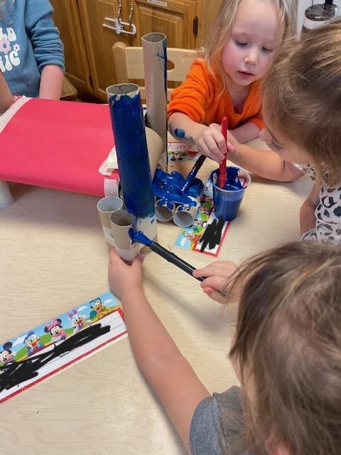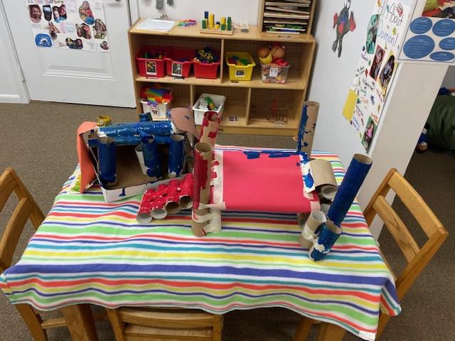 Marshall County, WV - The Stepping Stones (2) Learning Center 3 yr old room engaged in Creative Curriculum's Road Study Celebration! Miss Robyn shares that the children divided into two groups and then worked together to design a bridge using toilet paper rolls, paper towel rolls, tape and glue! Day one our little engineers and architects and construction crew teamed up to design and build their bridges. Day two the children then painted their bridges and held a final walk thru to discuss their designs and reasons for a bridges in our daily lives.