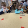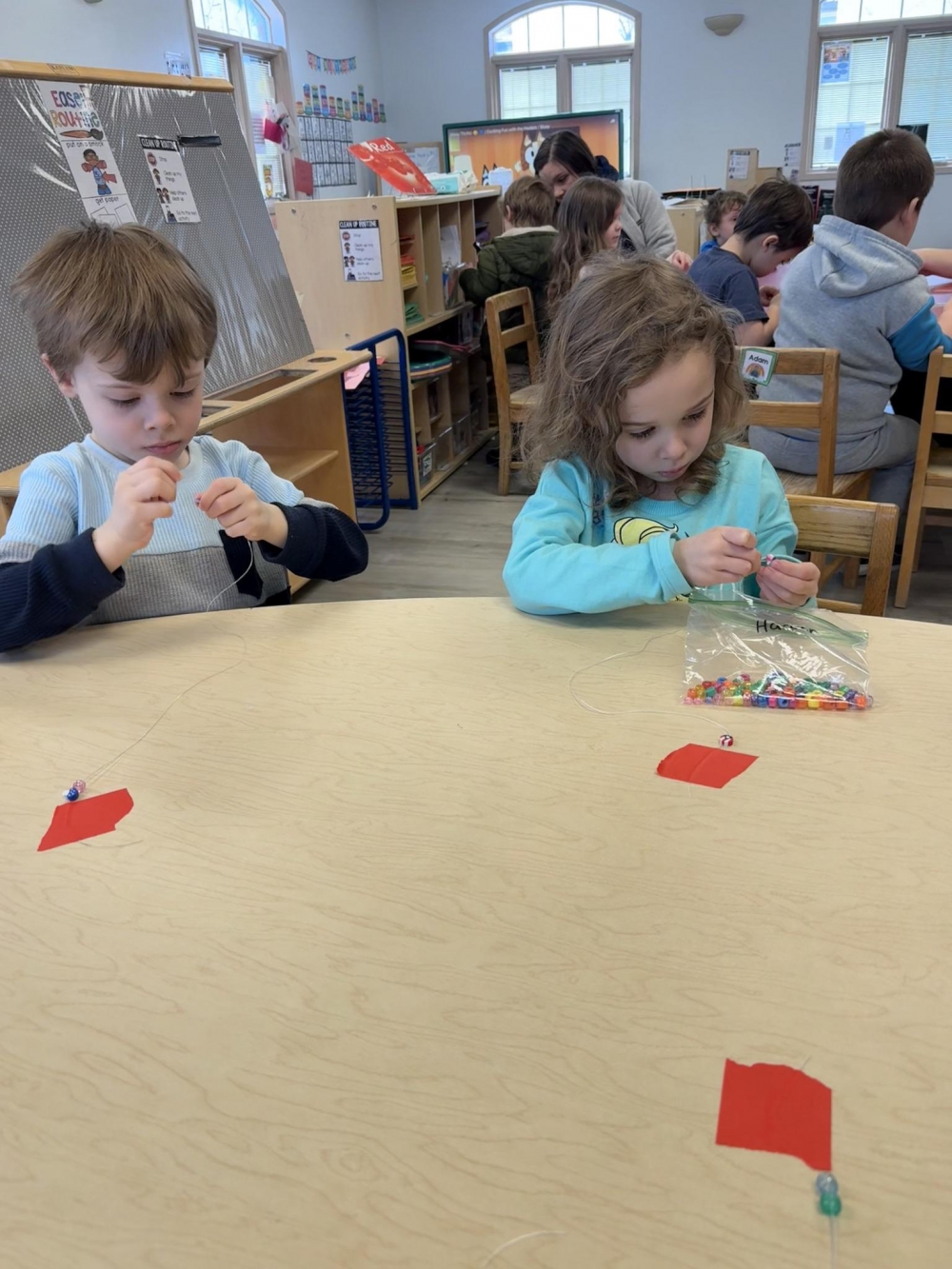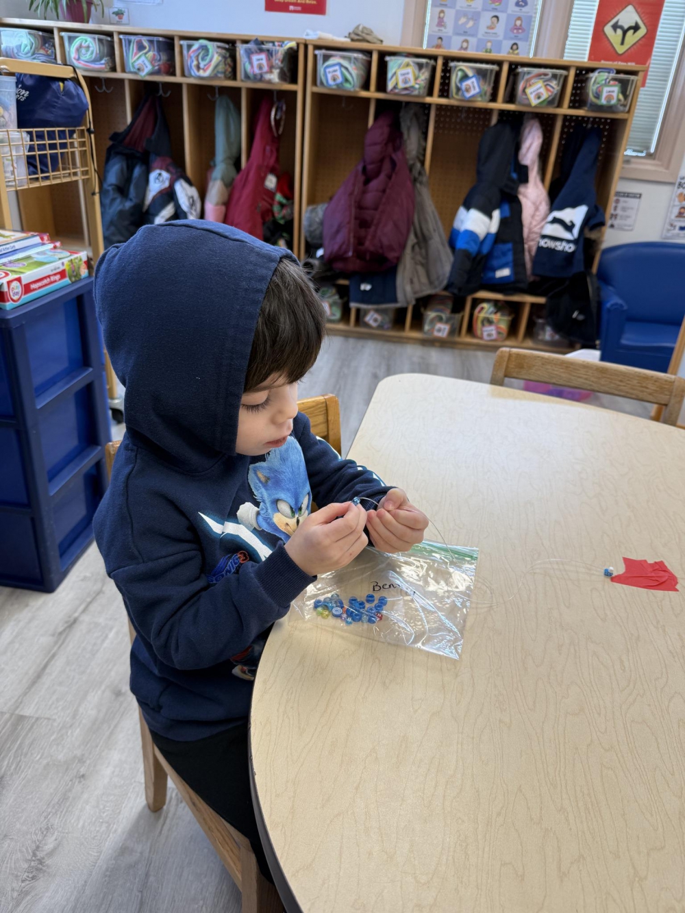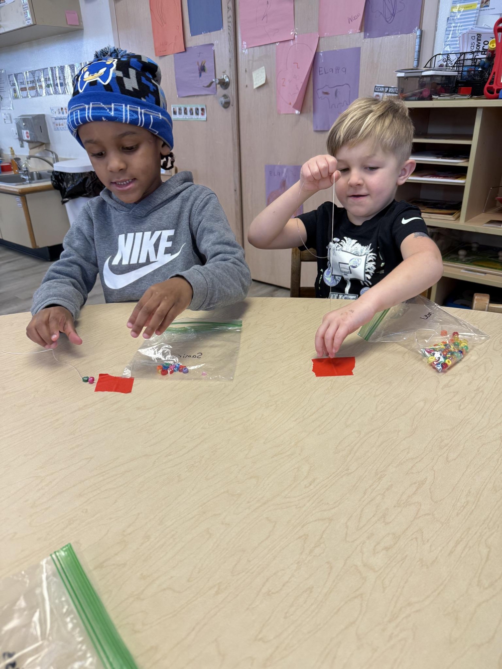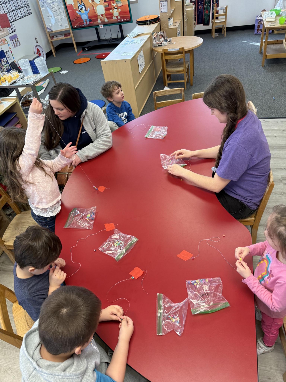 Hancock County, WV - Yesterday, the Pipinos 3 Pre-K students invited their parents to join them in making friendship bracelets. Miss Jessica, pre-k teacher, shares that they have been learning all about what qualities make you a great friend. The class has been reading stories about friendship, made a list of what they think a friend should look like, played friendship bingo, and they decided to wrap it up by making matching friendship bracelets!