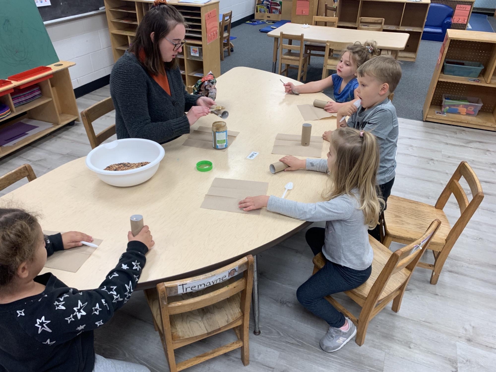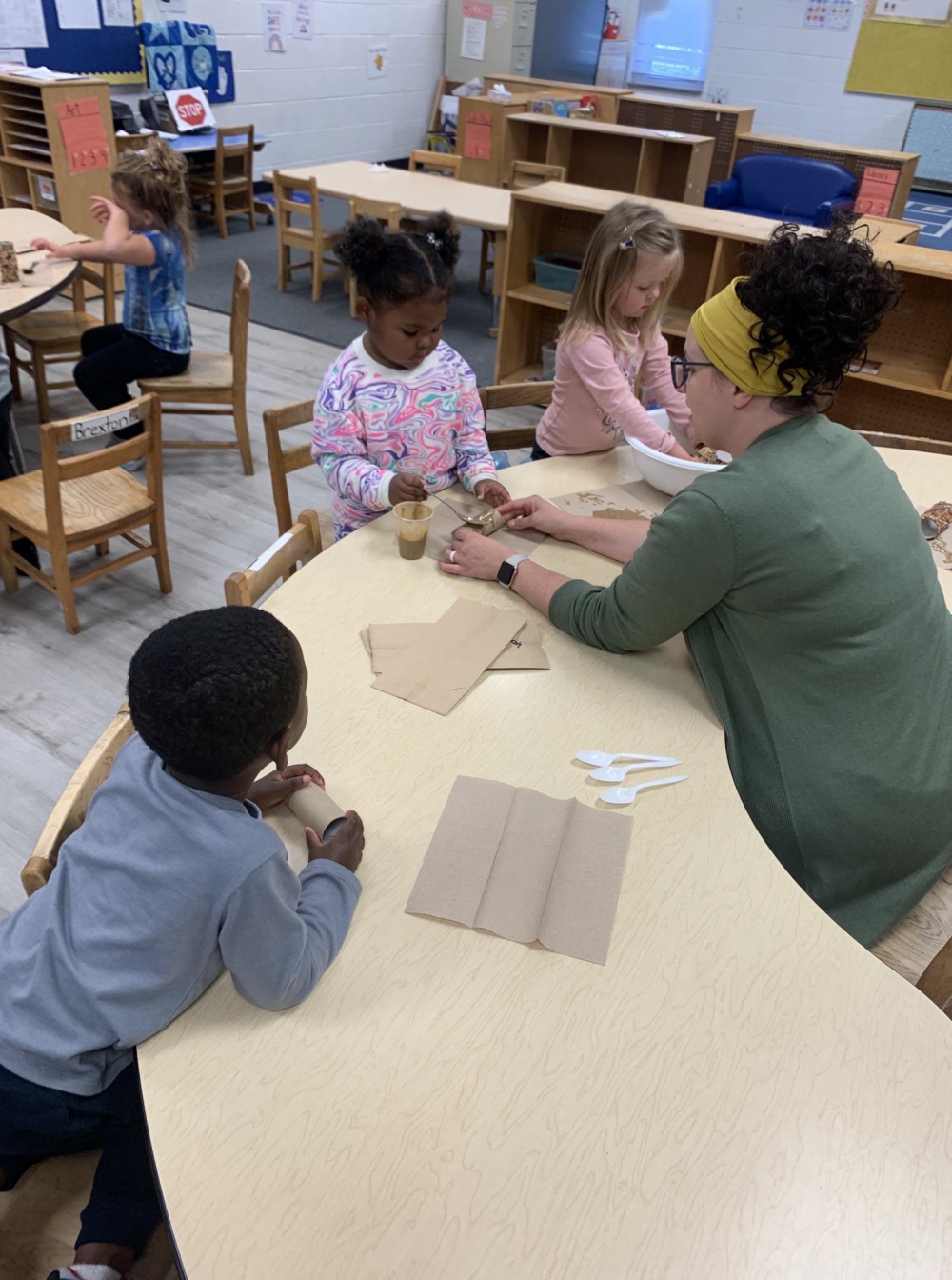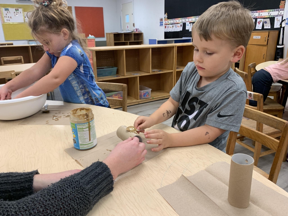 Ohio County, WV - Our North Park 1 students used their communication skills to engage in conversation about the how, what, where, and why of making bird feeders. The hand and eye coordination used here was hard at work for this special activity. Listening skills were put to the test by listening to complex sentences and following the directions Miss Samantha and Miss O’Linda provided.