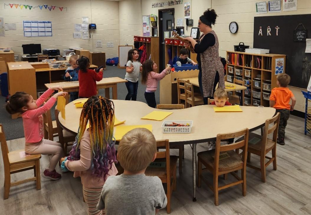 Ohio County, WV - Miss Amanda, preschool teacher, shares that her North Park 3 classroom enjoyed a calm morning as they listened to classical music and painted to the soothing sounds. The children are currently learning about music, instruments, and sounds. They have learned that some music can be soft and calming while other music is fast with beats that make us want to dance (Like the music Miss O’Linda played on her ukulele).