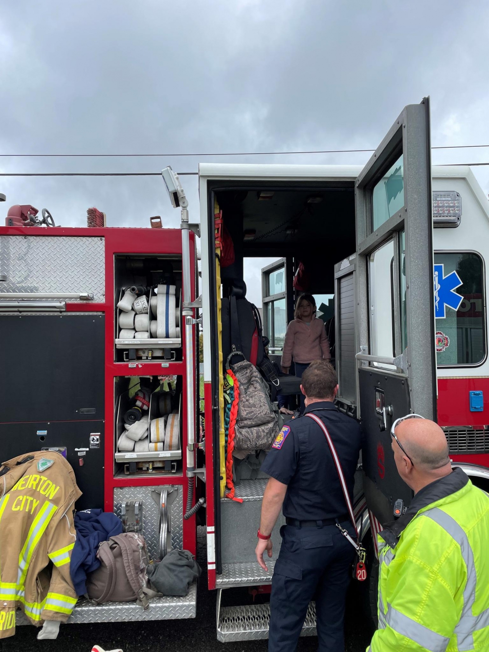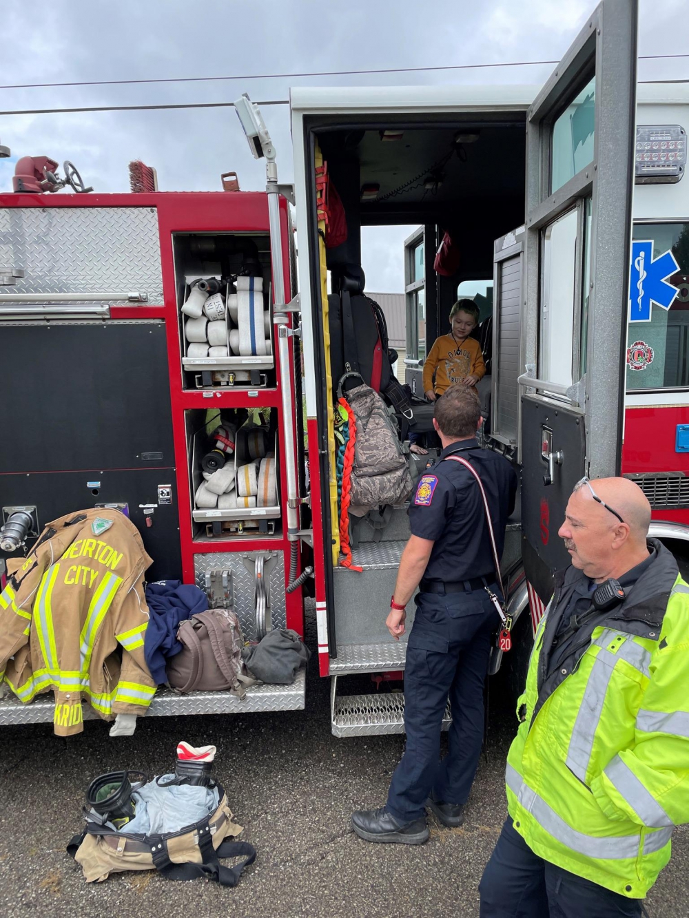 Hancock County, WV - The Pipinos 3 Pre-K students were visited today by members of the Weirton Fire Department. The EMS professionals educated us on fire safety and prevention, demonstrated what happens when a fire fighter arrives to save us during a fire and even allowed the children to climb up inside their fire truck.
