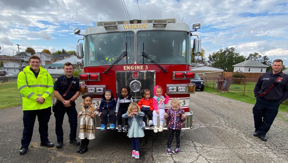 Hancock County, WV - The children enrolled at the Pipinos Head Start Center took part in Fire Safety and Prevention Month. The firefighters provided in classroom learning and provided the children with a tour of the fire truck.