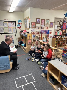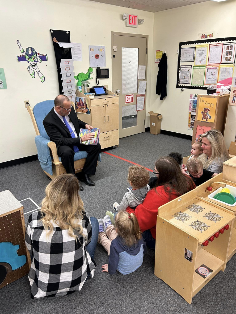 To help commemorate Read Across America Day, City Manager Rick Healy read to children at the Northern Panhandle Head Start Inc. in Moundsville on Wednesday. The little ones enjoyed “Oh, The Thinks You Can Think”, by Dr. Seuss.